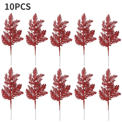 10/5Pcs Artificial Plants Pine Branches Christmas Glitter Gold Leaves