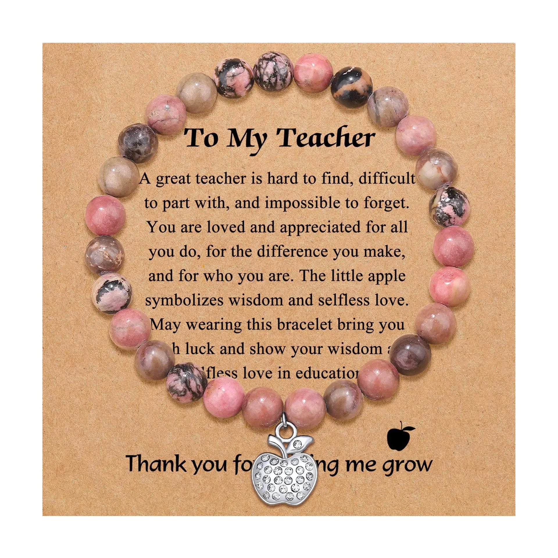 The bracelet features stunning natural stones that add a touch of elegance to any outfit. Perfect for both everyday wear and special occasions, this bracelet is a beautiful reminder of the appreciation and admiration for teachers.